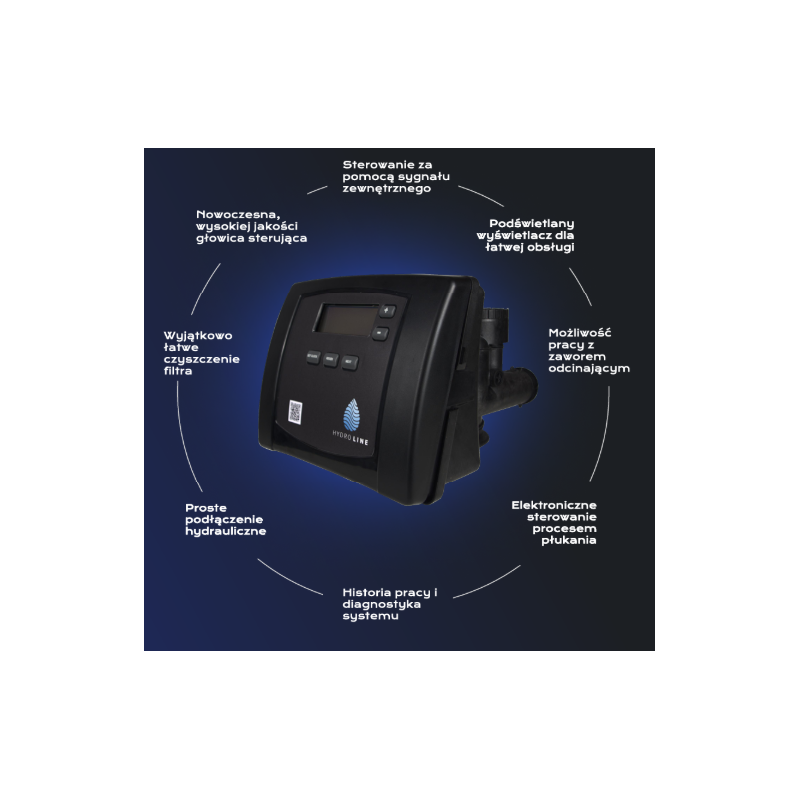 Automatyczna głowica sterująca z napowietrzaniem i podświetlanym wyświetlaczem zapewnia łatwą obsługę i konserwację. Kompaktowa konstrukcja umożliwia montaż w ograniczonej przestrzeni, nie zajmując dużo miejsca.